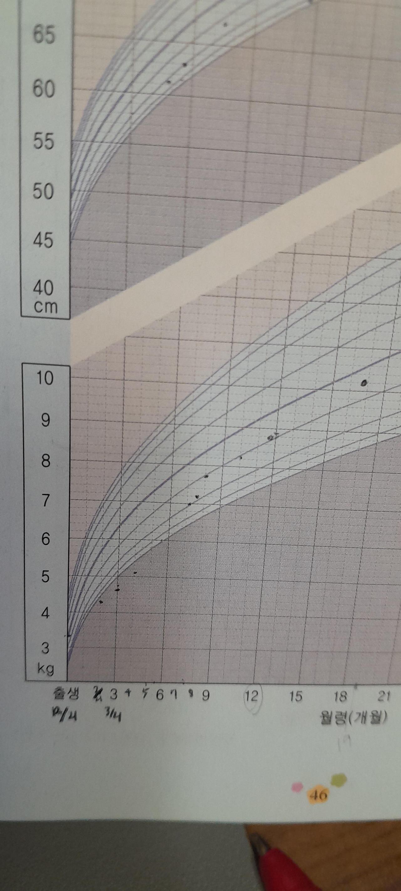 우리 아기는 그 그래프의 9개 곡선중 어느 것도 따라가지 못했지요.